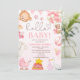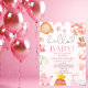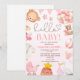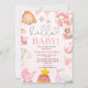 funny watercolor pink teddy bear girl baby shower invitation
