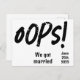 Oops, we got married while we were out. A funny, cute couples elope announcement. Sure saves some money!