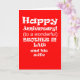 This funny anniversary greeting card humorously turns things around a bit by highlighting the brother in law and playfully placing the sister, his wife, in a somewhat secondary status.