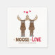 Cute Whimsical Moose saying "it moose be love". This design features a wedding engagement shower party, cute funny whimsical fun moose, with red hearts cocktail paper napkin, modern stylish trendy typography script, great for rehearsal grooms dinner barware drinks, humour cartoon simple minimalist minimal, it moose be love napkin, funny quote saying couple newlywed, an engaged newly engaged couple, custom customised personalised party