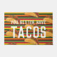 As a society, often forget about doormats and usually settle for plain and boring ones. You know, those that you see on sale in a supermarket. But that’s not how you ought to live your life. Doormats can be astonishingly hilarious, with cool puns and funny quotes. They can make you smile every time you go in and out of your home. They also have the power to surprise your visitors or get them in a better mood before entering. Let everyone know that they best not be knocking on your door without some tacos!!! Add your custom wording to this design by using the "Edit this design template" boxes on the right hand side of the item, or click the blue "Customise it" button to arrange the text, change the fonts and colours and to also add additional information or images to this design. If you need any coordinating items, (thank you cards, etc.) please contact me for a custom order.