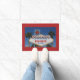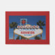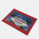 Parody of the famous Welcome to Fabulous Las Vegas sign with your name added on this doormat! Altered photo of the sign with space to add your name. Customise the name line and, if you choose, the "residence" line to make a funny and cool personalised door mat for Las Vegas lovers anywhere. The retro kitschy vintage sign is well known and sure to bring a laugh to your guests. Red border surrounds the image of the sign and palm trees. Also fun for Vegas or Casino themed event.