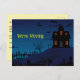 Funny We're Moving Haunted House Blue Background Announcement Postcard