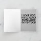This card is great fun and good quality. I loved the humour inside and on the back. There is the opportunity to change the orientation of this card from landscape to portrait, which I did. It is relatively straightforward to amend the typeface to fit the new orientation. It was well packaged with no plastic. The printing on this card is excellent.