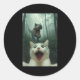 Funny White Cat Selfie With T-rex Dinosaur, Cat Ki Classic Round Sticker