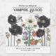 Funny black and white "Vampire Blood" wine bottle labels for Halloween baby shower favours or party treats. The cottagecore design features moody fall floral illustrations of vampire strawberries and black poppies. Cute mushroom ghosts fly around the flowers. The text can be easily customised with the details of your baby shower.