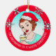 Funny Wine Humour Retro Lady White Christmas Ceramic Tree Decoration