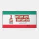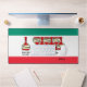 Funny Wine Lover Cartoon Vino Desk Mat depicts a bottle and a particular row of bottles against a green, white and red colour background reminiscent of the Tricolore flag or Italy. Perfect for an Italian-American oenophile...especially one who lives in a condominium, or condo, for short..
