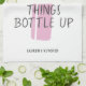 Funny wine lover kitchen towel with stylish pink wine bottle illustration reading "It's not good to keep things bottled up" with your custom name or text below in a modern, trendy typography design.