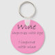 Funny wine quote unique birthday gifts joke keychains. Wine improves with age I improve with wine. Fun gift idea black and pink keychain.