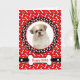 Charming card features your favourite pet photo, or family photo. Red dog bone pattern surrounding a photo template frame. Message inside reads - "No Bones About it - It's going to be a very good year!"