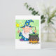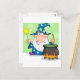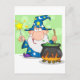 Funny Wizard Waving With Magic Wand And Preparing Postcard