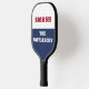 Cute patriotic feminist pickleball racket in red white and blue.