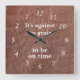 The clock says, It's against my grain to be on time.