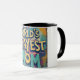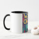 This humourous and playful design features the phrase "World's OKAYEST MOM" in a bold, retro-inspired font with a mix of yellow, teal, and white lettering outlined in blue. The background has a textured, graffiti-style appearance with splatters of vibrant colours like pink, yellow, and blue. This mug design playfully acknowledges that not every day is perfect, making it a funny and relatable mothers day gift and a humourous mothers day mug for a mum with a great sense of humour.