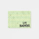 "Lit Happens" is a humourous play-on-words for readers and writers. In this design for people who love reading, the text is done in a grungy, black font. The background is a distressed yellow, lined notebook page with ink spots. It's the perfect funny design for you or an author / librarian friend.