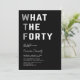 Brighten up your milestone celebration with our unique 40th birthday party invitations! These invitees offer a witty 'what the forty' phrase, set against a sleek black backdrop. With a contemporary text template that can easily be tailored to your preference, you can surely relay the details of your festivity in style!