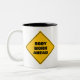 Funny yellow body work ahead caution road sign Two Two-Tone Coffee Mug
