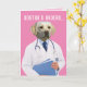 A very serious-looking yellow lab wearing a lab coat (he's a "dogtor"). The front says, "Dogtor's orders..." Inside the card has a list of orders to follow (which are very similar to dog commands): "LIE DOWN, PIG OUT, WATCH TV, ROLL OVER, REST SLEEP, HEAL. GET WELL!