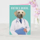 A very serious-looking yellow lab wearing a lab coat (he's a "dogtor"). The front says, "Dogtor's orders..." Inside the card has a list of orders to follow (which are very similar to dog commands): "LIE DOWN, ROLL OVER, SLEEP, EAT, DRINK, WATCH TV, REST, HEAL. GET WELL!
