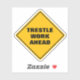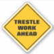 Funny classic yellow diamond caution road sign warns of trestle work ahead in a thick black sans serif font. A thoughtful gift for a train or bridge enthusiast.
