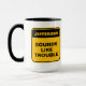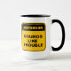 Funny yellow warning label sounds like trouble mug