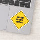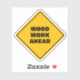 A classic yellow diamond caution road sign warns of wood work ahead in a thick black sans serif font. Perfect gift for a carpenter or woodworker, a pun play on words of a classic sign, road work ahead,