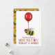 Send a buzz of holiday cheer with this whimsical Christmas card featuring a Santa-hat-wearing bee floating joyfully on a red balloon. With scalloped edges and a vibrant bee pattern on the back, this card blends festive charm with a touch of humour.