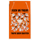 Whoa! That's going to be a whole lotta candy! If you find Hallowe'en to be one of the most fun-filled days of the year, then this whimsical gift bag, which features the punny observation "You've Been Ghosted!" styled in a creepy font in white with cute AI-generated crowd of ghosts celebrating their big night on a pumpkin orange background--is a great way to say trick or treat at the door on the spookiest time of the year (and use a real groaner)!