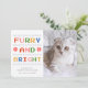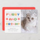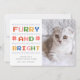Cute trending Furry and Bright Christmas Holiday pet photo greeting card. Colourful cross stitch ugly Christmas sweater inspired graphic and typography with text that reads "Furry and Bright" , pet version of Merry and Bright :D Message that says "WISHING YOU A PURRFECT HOLIDAY SEASON" can be customised for your cat with a place for your name on a white background. Personalise and send to all your family and friends. Back of card is a matching red and blank for a personal message. Dog version available. Part of a collection ©Marisu Valencia