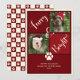 Introducing the Furry And Bright Red Photo Collage Dog Holiday Card – the perfect way for pet lovers to send festive greetings! The front showcases two customisable photo slots to feature your dogs, with elegant script text spelling out "Furry & Bright" for a touch of seasonal charm. The back features a playful red and cream chequerboard paw print pattern, adding a unique flair. Ideal for dog parents, this card is fully customisable to include your furry friends, making it a special keepsake for the holidays! The current photos are placeholders—please replace them with your own photo to make this card uniquely yours. Happy Ann Designs.