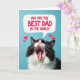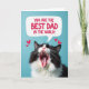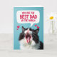 This card shows a fluffy black-and-white house cat front and centre, caught mid-meow with its mouth open wide, pink tongue showing, and small teeth visible as if calling out to a beloved dad 👨. Long white whiskers fan out from its muzzle, giving the face extra energy and a teasing, affectionate feel. Near the top, a rounded white speech bubble holds the message “YOU ARE THE BEST DAD IN THE WORLD!” in thick crimson lettering. A few small red hearts hover around the cat’s head, like little signals of fondness and close family warmth. The background is a smooth blue-green field that makes the black fur, white fur, and red accents stand out clearly. Bright lighting adds shine to the fur and makes the red text and hearts look more intense, like a cheerful shout of appreciation 🛠️. The cat’s eyes, whiskers, and open mouth are sharply detailed against the flat blue-green backdrop, with the white speech bubble sitting above and the red hearts scattered nearby.