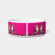 This is a heavy, durable bowl decorated with Tibbies of many colors, the perfect size for hungry/thirsty Tibs. The design is interesting and printing clear.