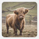 **"Furry Majesty: The Woolly Brown Highland Cow"** Square Sticker