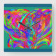 Furry Rainbow Colored Flower Square Wall Clock