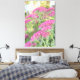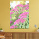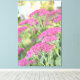 Modern floral stretched canvas print with fuschia pink sedum flowers. Warm garden coloured print.