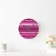 Fuschia stripes round clock