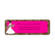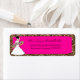 This design features a silhouette of a raven-haired bride dancing inside a giant wedding band. The background is a playful leopard pattern with an overlay colour of fuscia. There is plenty of customisable text for your address information.