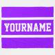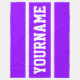 This sporty bold design features athletic white text, ready to personalize, inside bold white accent stripes against a background of bright purple.