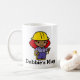 Cute girl wearing a yellow hard hat and holding a hammer and rope. For the construction worker chef or contractor of tomorrow. Text is customisable.