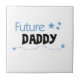 Future Daddy keepsake tiles and boxes, plates, mugs, notebooks, gel mousepads, and other future daddy gifts with blue and black text and stars design.