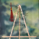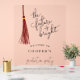 Whimsical and minimal graduation party sign featuring hand drawn illustration of a maroon tassel with the typography text that says "the future is bright."