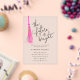 Minimal graduation party invitation featuring hand drawn illustration of a pink tassel with a hand lettered typography text that says "the future is bright."