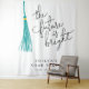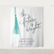 Celebrate your graduation in style with this fun, modern party backdrop featuring hand drawn illustration of a teal tassel with typography text that says "the future is bright."