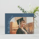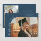 Modern and whimsical graduation announcement photo card featuring a photo on the front and 1 on the back. The text says "the future looks bright" in quirky hand writing. Add the graduate's name, information, and message to personalise this card. Navy blue.