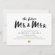 This engagement party invitation features the words "the future Mr. & Mrs." in a modern black handwritten script. A faux gold foil heart sits at the bottom underneath the party details.