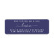 Chic, modern and simple wedding return address label with the text the future Mr and Mrs and your surname in white elegant handwritten script calligraphy on a navy blue background. Simply add your name and address. Exclusively designed for you by Happy Dolphin Studio. If you need any help or matching products please contact us at happydolphinstudio@outlook.com. We're happy to help you make your wedding the most beautiful day!