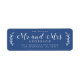 Chic, modern and simple wedding return address label with the text the future Mr and Mrs in white elegant script calligraphy on a classic blue background with a stylish touch of rustic foliage. Simply add your name and address. Exclusively designed for you by Happy Dolphin Studio. If you need any help or matching products please contact us through our store chat. We're happy to help you make your wedding the most beautiful day!