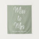 custom miss to mrs backdrop, personalised bridal shower photo prop, bridal shower photo booth backdrop, boho bachelorette party sign decor, hen weekend trip decorations tapestry, rustic photobooth for her bride, bridal shower future mrs sign, future mrs back drop wedding, sage miss to mrs banner, green custom bridal shower backdrop