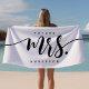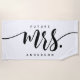 Future Mrs Black And White Soon To Be Bride Personalised Beach Towel. Modern script personalised name beach towel. Perfect honeymoon towel for the bride. Personalise this custom design with your own name or text.
